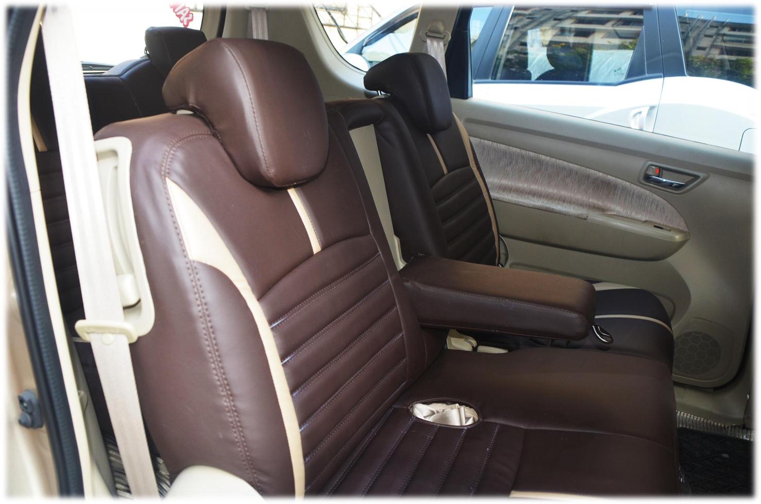 We put Chocolate brown and Olive combo art leather seats from Orchis, which were essential since the original company fitted fabric cover was light beige.