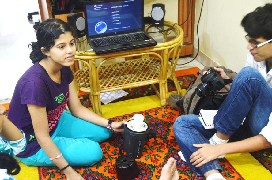 Each child then got a chance to set their product in the studio, experiment with different lighting, exposure and aperture settings, and click as many as they wanted. Then they had to choose one for each product for the final discussion.