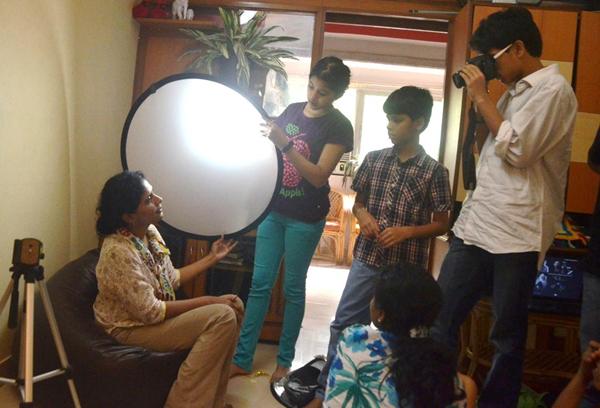 Radha started the session with a short video presentation by an expert and his demonstration of different photographs using different sources and angles of lights.
