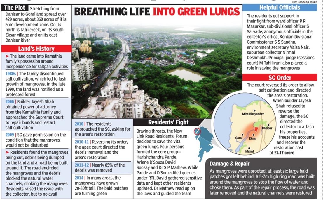 The sight of thick mangroves stretching for kilometres from Dahisar to Gorai may appear commonplace. However, behind their lushness is a tale of extraordinary grit exhibited by a handful of ordinary residents of the area who, braving threats for years, battled in courts and outside to restore the green lungs from the brink of near ruination.
