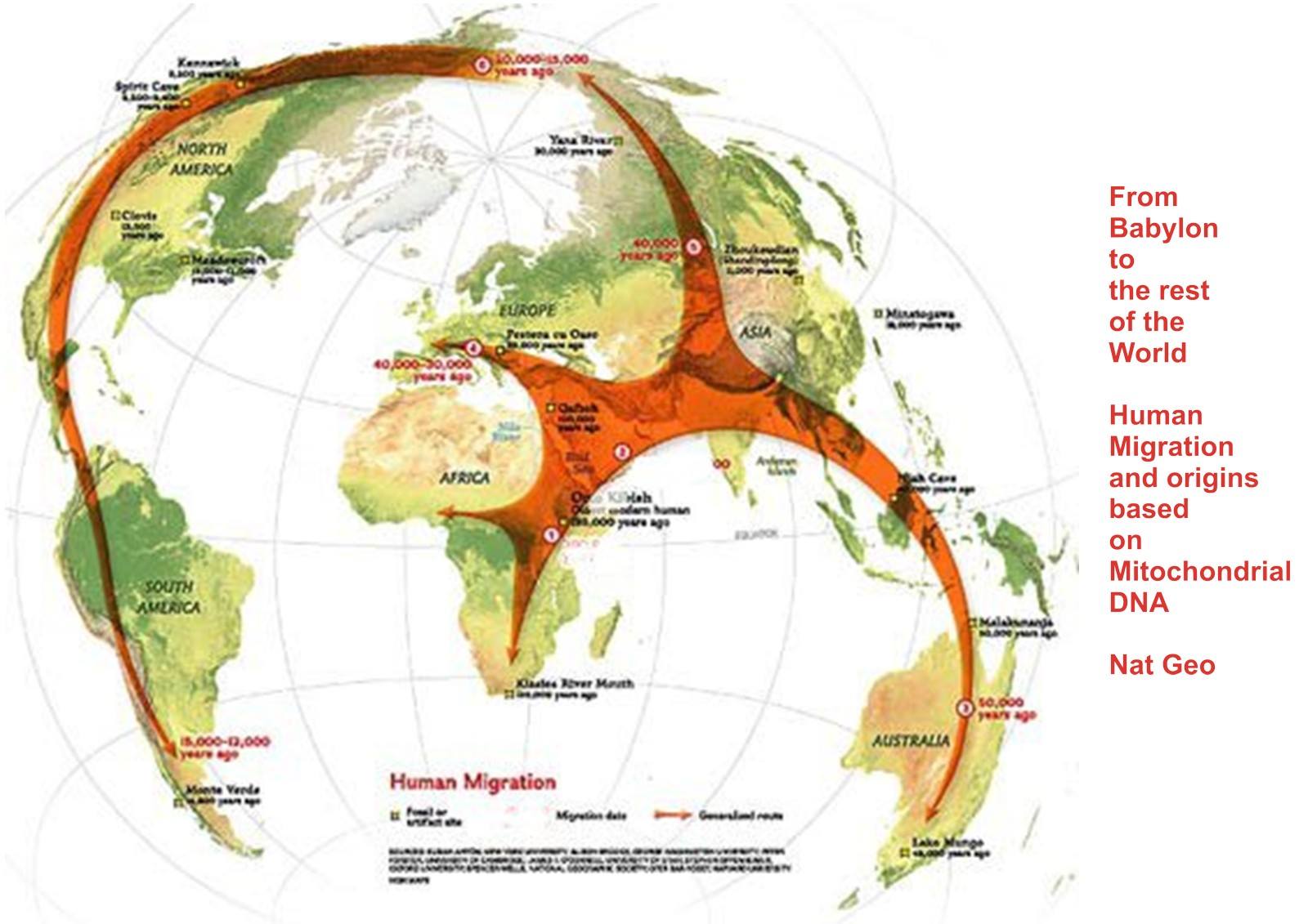 In the mid-1980s the late Allan Wilson and colleagues at the University of California, Berkeley, used mtDNA to pinpoint humanity’s ancestral home. The map of human migration which they made based on mitochondrial DNA studies. The map was a big surprise for those who believed that humans have come out of Africa! [Please see at bottom of post]