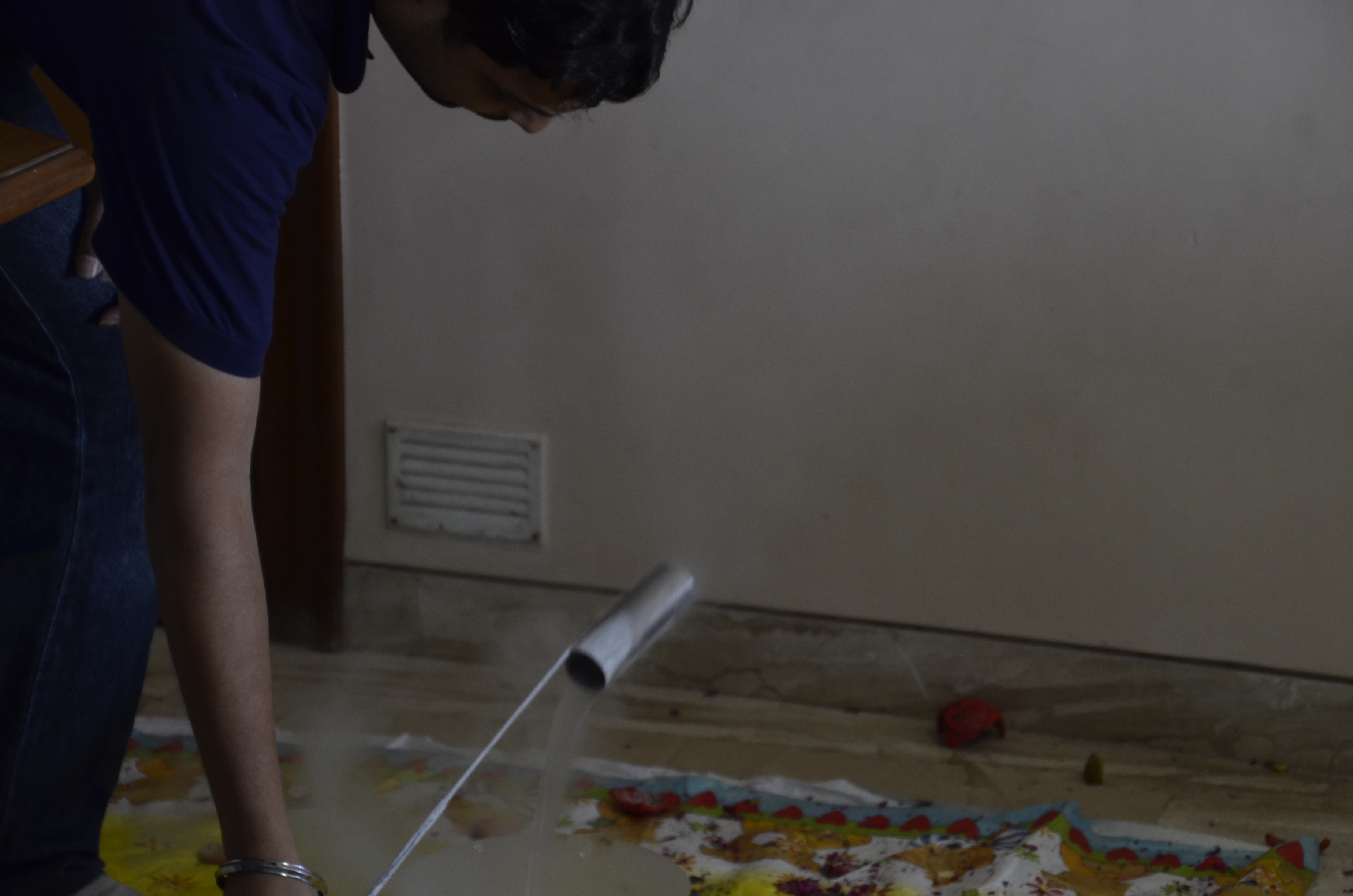 They started with introducing themselves, Science Utsav, a company, started 4 years ago in Bangalore. Then they invited questions from the children and parents alike. The first experiment was one of pouring out liquid nitrogen into a plastic beaker and putting a fresh rose in it.