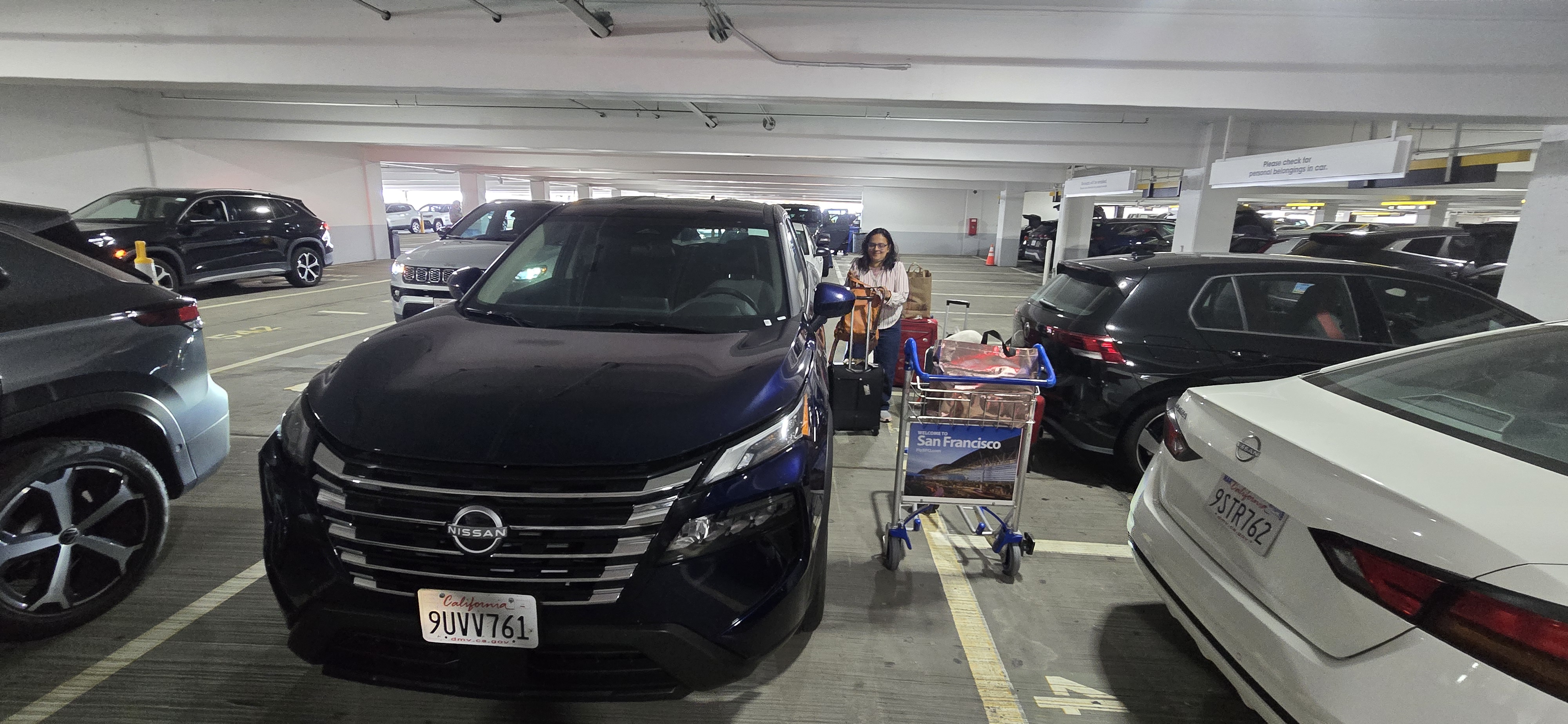We returned the car at Hertz SFO ie San Francisco, all clearly marked by signages, and then caught the train to the departure terminal. The Luggage trolly cart cost 9$ at the rental return place, but you can carry it in the train.